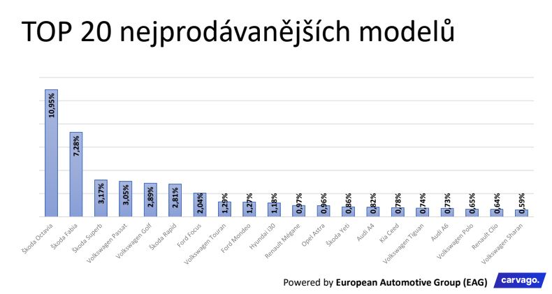 Trhu s ojetými automobily se daří. Potvrzuje to souhrnný report online prodejce vozidel Carvago, spadajícího do skupiny European Automotive Group (EAG), který díky kompletní digitalizaci databáze ojetých automobilů v ČR i Evropě monitoruje přes 80 % tuzemského trhu. Z údajů společnosti vyplývá, že Češi v roce 2019 za ojeté automobily utratili meziročně o 4,5 % více, v počtu prodaných kusů napřímo koncovým zákazníkům to bylo s meziročním růstem 2 % přes 457 tisíc vozů. Nejvíce se dařilo osobním automobilům v kategorii malých vozů a nižší střední třídy, kde dominovala Škoda Octavia s dieselovým motorem a nájezdem do 130 tisíc kilometrů. Poptávka po tomto typu automobilu však výrazně převyšuje nabídku, což by mohlo vyřešit větší provázání se zahraničními trhy.