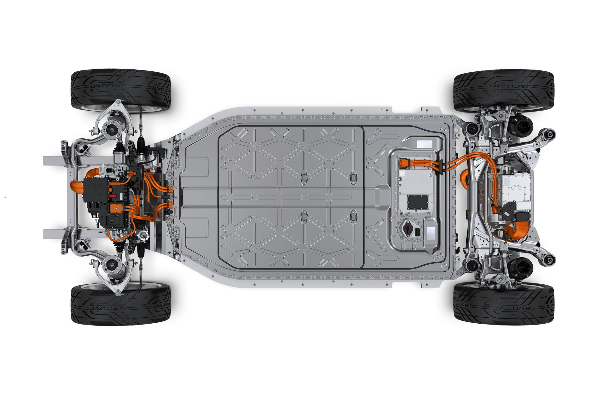 I-Pace je postaven na zcela nové platformě, jejíž rozměry jsou 4680 mm do délky, 1890 mm do šířky a nakonec 1560 mm do výšky. Rozvor o délce 2990 mm nám asi už teď naznačí, že v interiéru bude dostatek místa i pro všechny cestující, avšak nutno podotknout, že samotná automobilka uvádí informace pouze o ne-závodní podobě. Zdali a jak se budou dané parametry lišit, se dozvíme až v příštím roce.