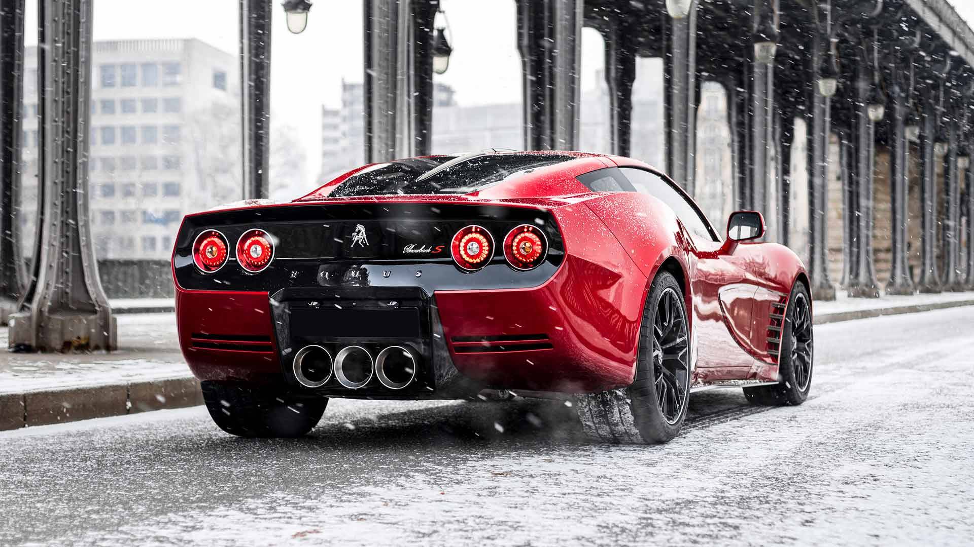 Pohled na auto zvenčí nás kromě jisté podobnosti s poslední generací Chevrolet Corvette (C7) odkazuje i na jisté doplňky novodobé úpravy. Panely karoserie jsou nyní navrženy z uhlíkových vláken, vzadu nám dělají společnost tři veliké koncovky výfuku (C7 má čtyři), pozoruhodnou změnou jsou také kulaté světlomety, s nimiž se setkáme i vepředu, a na staré Corvetty dalo vzpomenou i na dvě části rozdělené zadní okno.